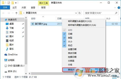 2、在“名稱”、“日期”、“類型”、“大小”或“標(biāo)記”任意一欄上單擊鼠標(biāo)右鍵,選擇“其他”;