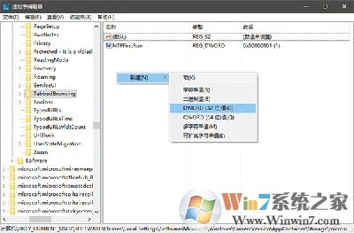 ① 新建DWORD(32位)值,命名為TabPeekShowDelay
