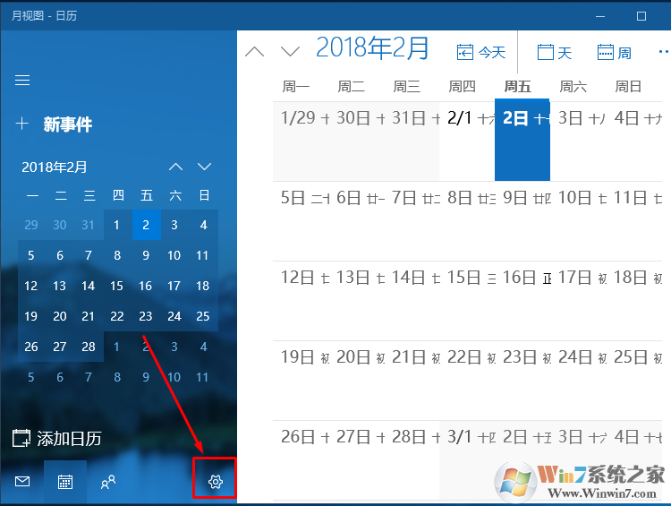 2、點(diǎn)擊打開日歷,選擇設(shè)置。