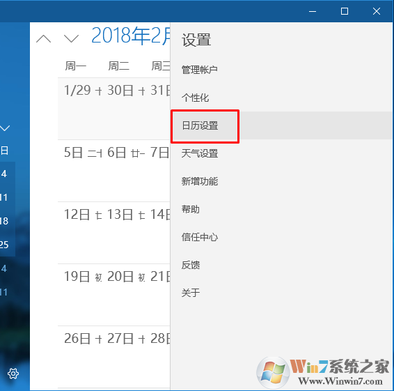 4、選擇日歷設(shè)置。