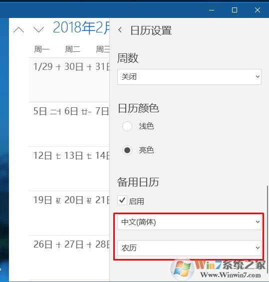 5、將備用日歷設(shè)置為簡體中文和農(nóng)歷即可。