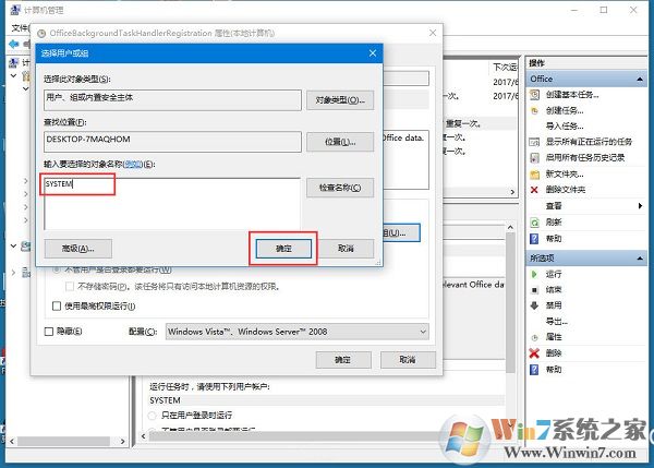 6、輸入 “SYSTEM”,點(diǎn)擊確定。