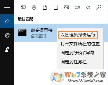 4、進入系統(tǒng)后,我們點擊左下角的Cortana搜索按鈕,搜索cmd,出現(xiàn)命令提示符,并右鍵【以管理員身份運行】;