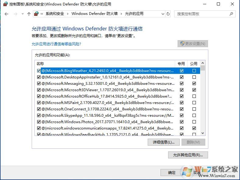 4、如果想要防火防開啟狀態(tài)下阻止或允許應(yīng)用程序通過防火墻,那么可以點(diǎn)擊“允許應(yīng)用或功能通過Windows defender防火墻”,并在列表中勾選或取消勾選進(jìn)行設(shè)置;