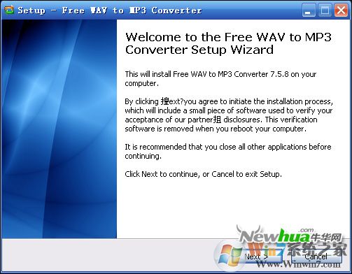 1、Free WAV to MP3 Converter的安裝過程非常的簡單,用戶只要根據(jù)安裝向?qū)нM行操作即可輕松完成安裝。