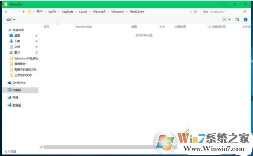 7、點(diǎn)擊【是】以后,INetCache文件夾中的IE臨時(shí)文件全部刪除了。