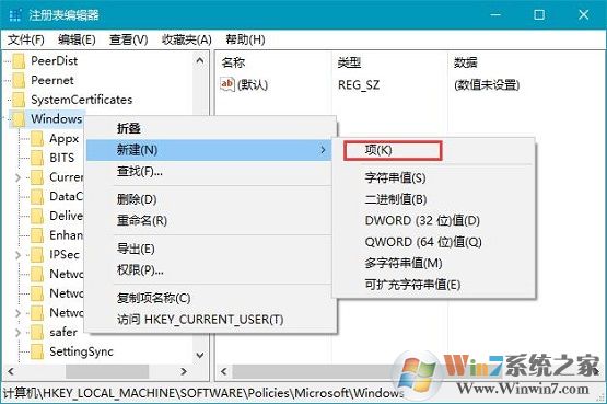 2、依次打開(kāi)“HKEY_LOCAL_MACHINE\SOFTWARE\Policies\Microsoft\Windows”,然后右擊新建名為CloudContent的子項(xiàng),如圖所示: