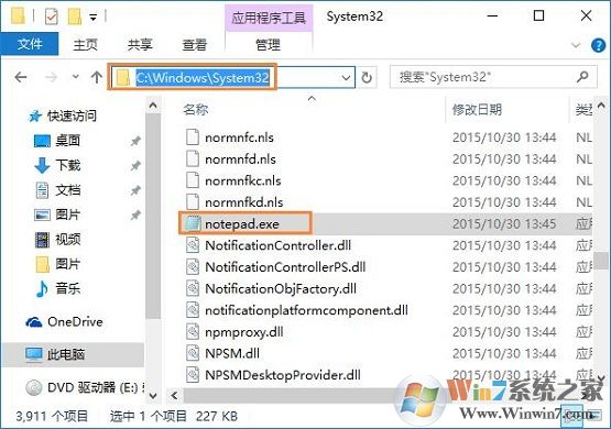 3、如是64位系統(tǒng),打開C:Windows\SysWOW64文件夾,32位系統(tǒng)打開C:Windows\system32,找到并選中“notepad.exe”,點擊打開,之后就可以打開TXT文本文檔了。如圖所示:
