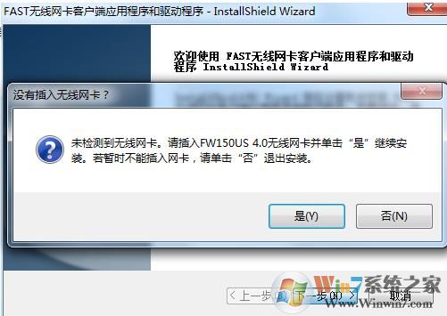 2、如果無線網(wǎng)卡沒有插入則會顯示,沒有插網(wǎng)卡的提示: