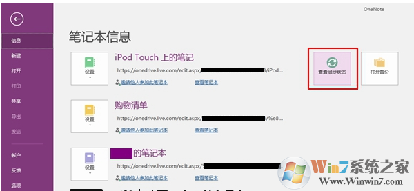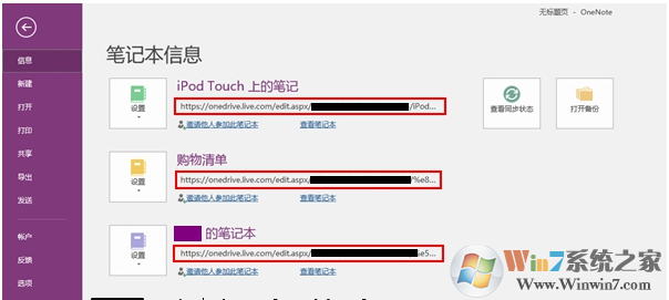 在OneNote 2016中,點擊Robbin功能區(qū)中的文件-信息,你將在此看到你所有的OneNote筆記,在這些筆記的下方,你可以看到它們對應的鏈接。