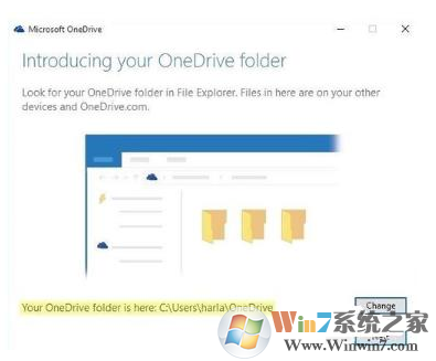 如果你想改變你的同步OneDrive文件夾的位置,單擊靠近屏幕底部的“更改”按鈕。 否則,單擊“下一步”使用默認位置。