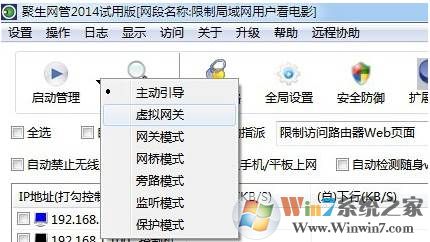 10、安裝并運行“聚生網(wǎng)管”程序,點擊主界面中的“安全防御”按鈕,從彈出的下拉列表中選擇“IP和MAC綁定”項。
