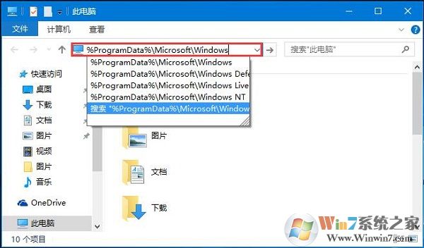 1、打開“此電腦”,在地址欄中輸入:%ProgramData%\Microsoft\Windows 并按下回車鍵;