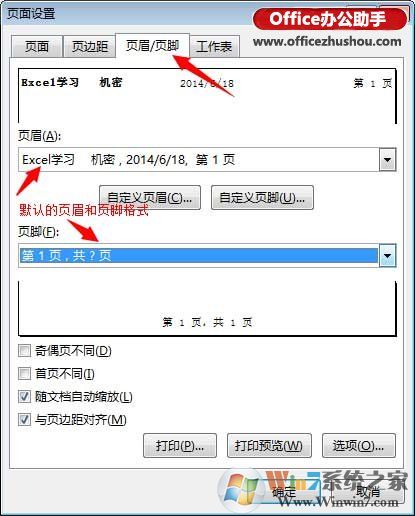 默認(rèn)頁眉和頁腳設(shè)置:Excel提供了默認(rèn)的頁眉和頁腳的樣式我,可以直接選擇使用。