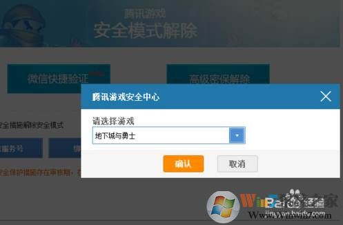 1、進(jìn)入解除安全模式網(wǎng)頁(yè)界面之后,點(diǎn)擊選擇微信解除安全模式,并選擇DNF游戲,點(diǎn)擊確定