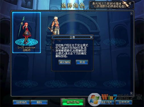 1、進(jìn)入游戲界面后,出現(xiàn)安全模式提示,我們點(diǎn)擊確定解除按鈕