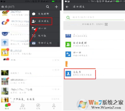 1、我們打開微信來到聊天界面點(diǎn)擊【添加朋友】選項(xiàng),來到搜索界面后點(diǎn)擊下面的【公眾號(hào)】服務(wù)。