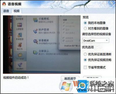 4、雖然手機(jī)界面上顯示是左右反的,但在電腦上顯示出來其實(shí)是正常的,如果部分用戶仍然不正??梢怨催xpc端的“鏡像網(wǎng)絡(luò)視頻”。要使用該攝像頭,在視頻設(shè)備里選擇DroidCam就可以了,QQ、Skype等各種需要使用攝像頭的軟件都完美兼容。