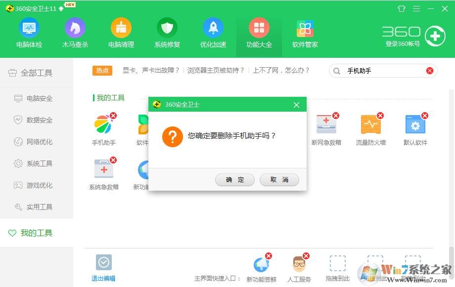 5、提示是否要刪除360手機(jī)助手,當(dāng)然,繼續(xù)確定;