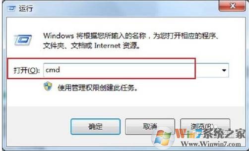 1、按下WIN+R,打開運行,輸入CMD打開命令提示符,如圖;