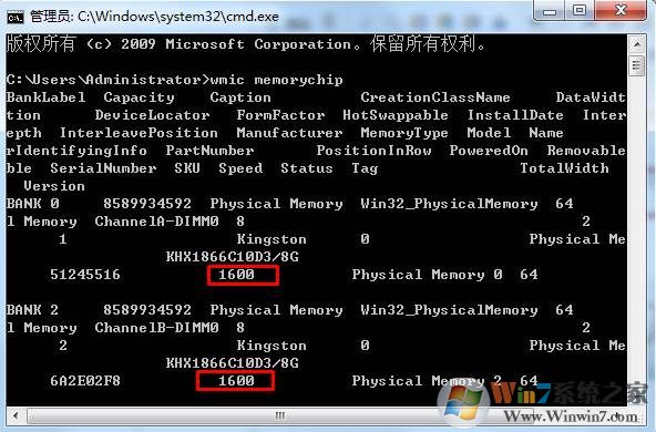 2、然后在命令提示符中輸入wmic memorychip 回車