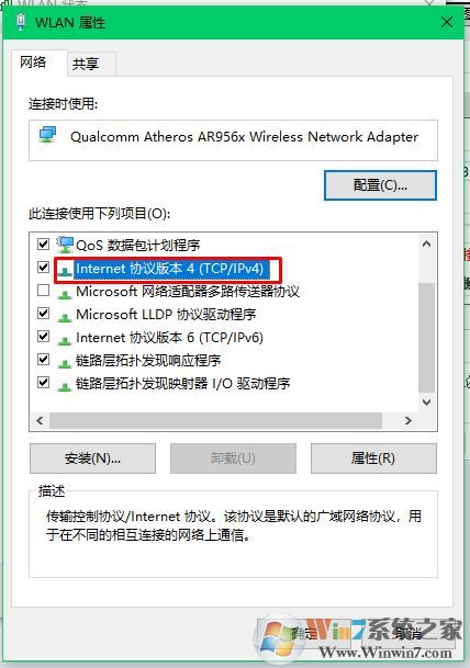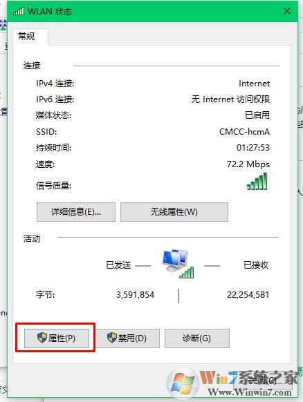3、雙擊打開(kāi)網(wǎng)絡(luò)狀態(tài)窗口,單擊“屬性”,在網(wǎng)絡(luò)屬性窗口中雙擊“Internet協(xié)議版本4“;