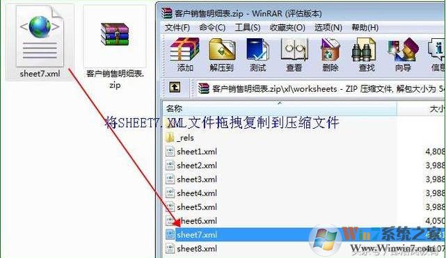 4、把改好的sheet7.xml文件復(fù)制到zip壓縮包中替換;