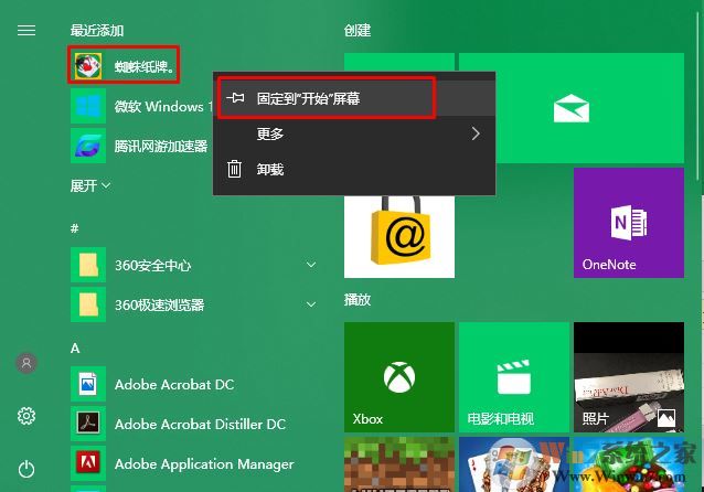 4、將游戲固定到開始菜單首頁。右鍵游戲固定到開始菜單。這樣以后會方便我們找到和打開。
