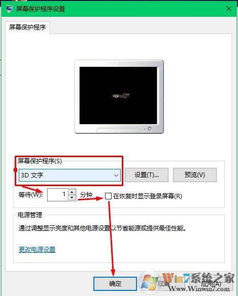 3、設置屏幕保護程序---等待時間----選擇確定即可。