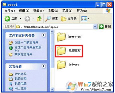 8、在“spool”文件夾中,雙擊“PRINTERS”文件夾。