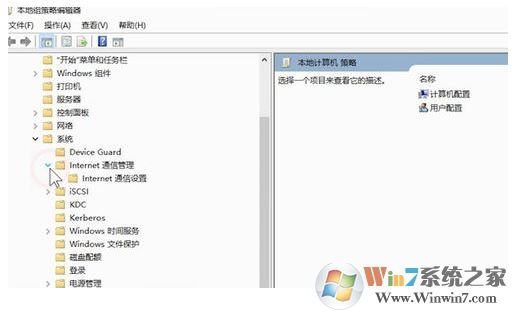 然后依次展開“計(jì)算機(jī)配置”-“管理模板”-“系統(tǒng)”-“Internet通信管理
