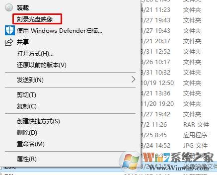 1、當(dāng)我們在Win10 ISO鏡像文件上點(diǎn)擊右鍵時(shí),彈出的右鍵菜單中會有“刻錄光盤映像”選項(xiàng)。如圖: