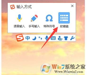 1、切換到中文輸入法,然后點擊輸入法的鍵盤圖標,如下圖;