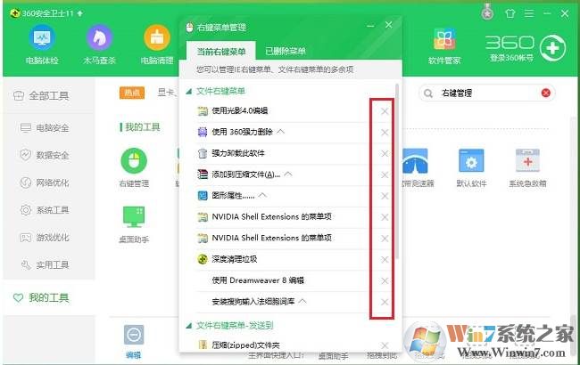 以360安全衛(wèi)士為例,只要在功能大全里找到,右鍵管理,然后將open這一項刪掉,就好了。