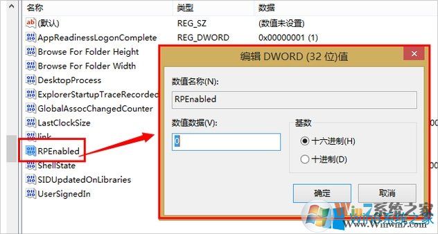 4、在Explorer右側(cè)欄找到RPEnabled,將其值從1改為0即可。