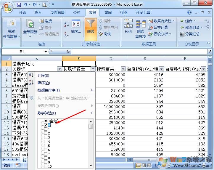 2、數(shù)篩選,只保留數(shù)值0,如下圖(Win7系統(tǒng)之家m.cncxm.com 整理)