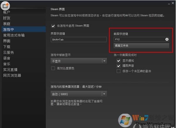 steam截圖快捷鍵是“F12”鍵,也可以自己在設(shè)置中進(jìn)行更改。如下圖