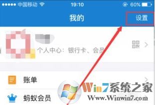 第一步,打開支付寶在我的界面點擊右上的設置,點擊進入。