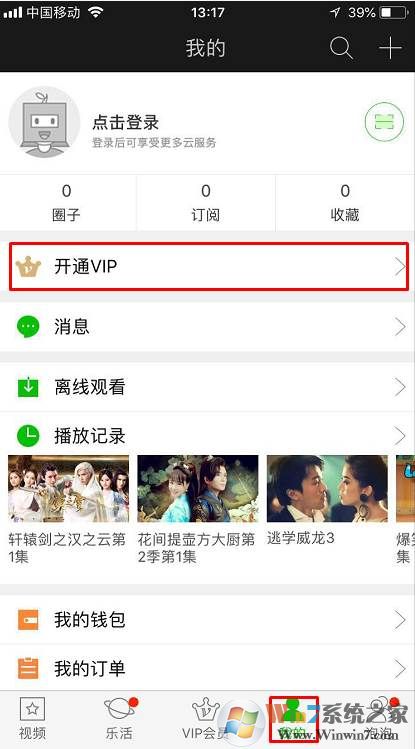 1、下載并安裝愛奇藝APP,打開后點(diǎn)擊下面“我的”,然后點(diǎn)上面的開通VIP;