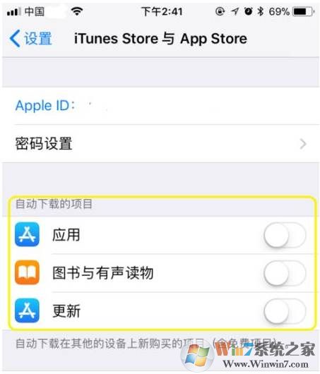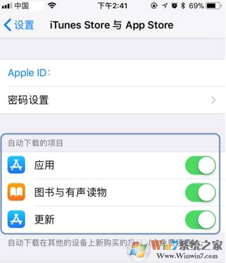 3、在應(yīng)用商店界面可以看到,自動下載的項目下面的三個選項都是打開狀態(tài)。(這個也有一個好處,就是大家在購買了應(yīng)用之后,在ipad上也會安裝一份,不要錢,這樣你的朋友和你可以一起使用免費(fèi)的應(yīng)用了)