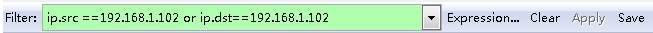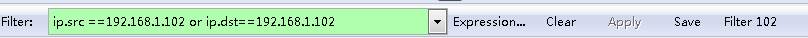 | ip.src ==192.168.1.102 or ip.dst==192.168.1.102 | 源地址或者目標(biāo)地址是192.168.1.102 |