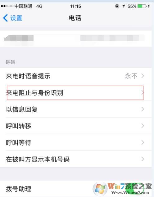 設(shè)置—電話——來電阻止與身份識別;