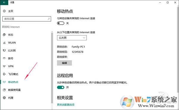 點擊移動熱點(注意,沒有無線網(wǎng)卡的電腦無此選項)winwin7.com