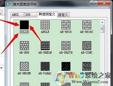 2、圖案填充—圖案那一欄點(diǎn)擊,各種圖例圖案,點(diǎn)其他預(yù)定義,雙擊第一個(gè)圖案
