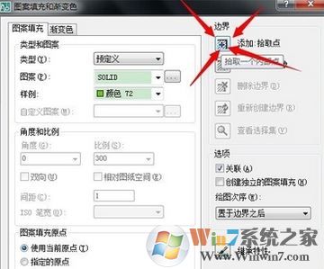 5、右上角點(diǎn)擊——添加:拾取點(diǎn),然后點(diǎn)擊要填充的區(qū)域,要填充的區(qū)域一定要是閉合的區(qū)域,最后按一下空格鍵點(diǎn)擊確定即可!