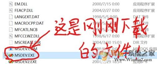 3、將下載的MSDEV.EXE替換掉原來的文件。(為了保險(xiǎn)起見,建議將原來的文件重命名為MSDEV2.EXE),如圖: