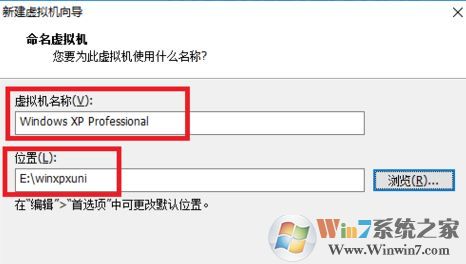 5、接著我們設置虛擬機的名稱以及安裝位置,如圖: