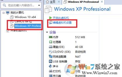 7、選中新創(chuàng)建的XP虛擬機,點擊編輯虛擬機設置,如圖: