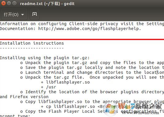 打開readme.txt里邊有安裝和卸載說明,對于tar.gz包的安裝主要是復(fù)制libflashplayer.so和/usr到對應(yīng)的目錄下。