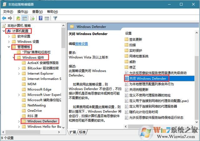 2、展開--管理模板--window組件--關(guān)閉windowsdefender